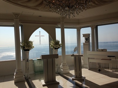 さて、本日は海と空を一望できるスカイチャペルの1ショットをご紹介します!